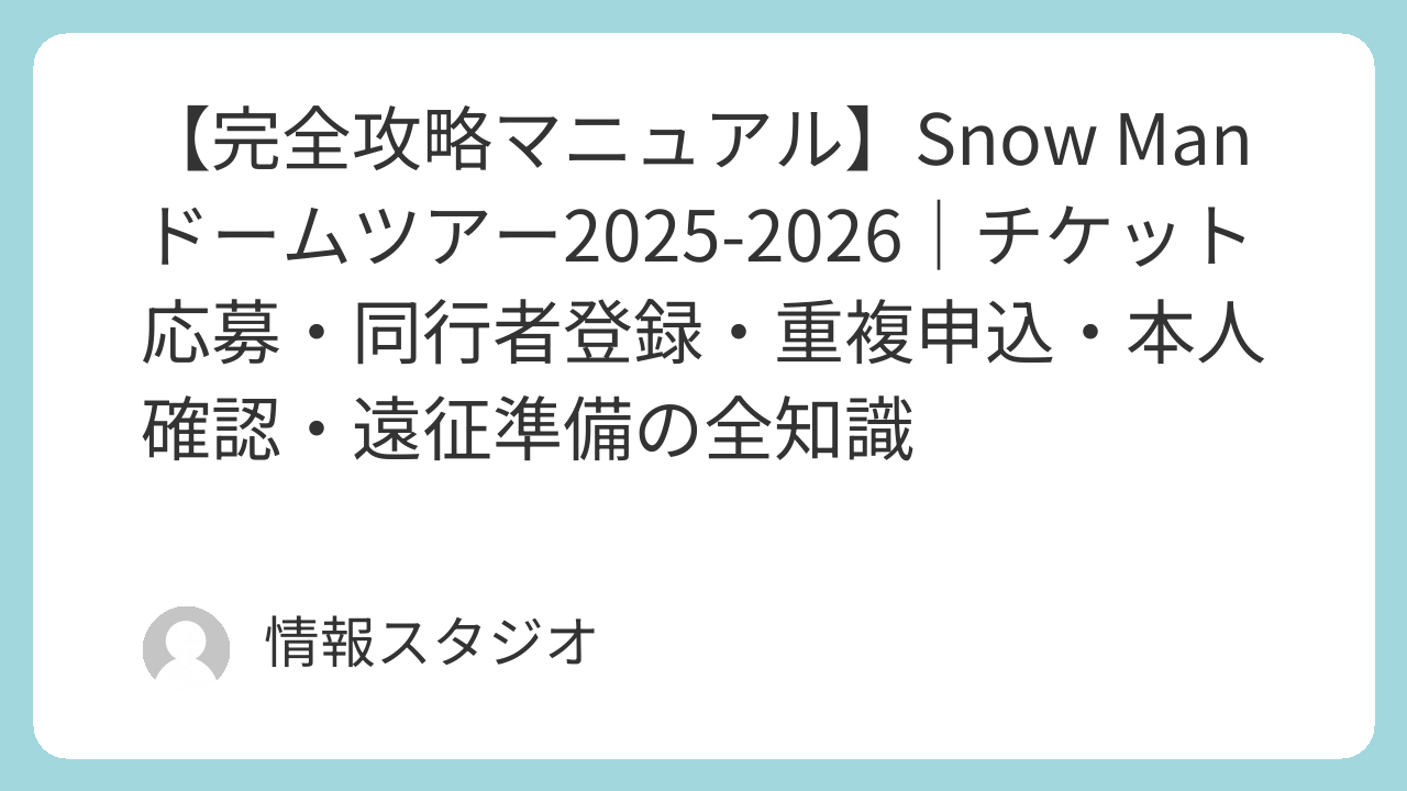 この記事では、Snow Manのドームツアーに応募するすべてのファンが知るべき情報を徹底解説します。