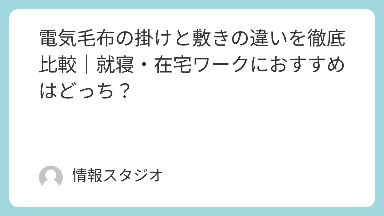 この記事では、電気毛布の掛けと敷きの違いを分かりやすく整理し、使用シーン別におすすめのタイプを紹介します。